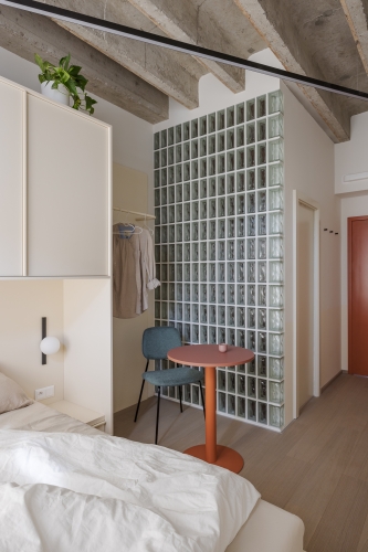 The SOLO Apartment offers a compact and smartly designed space, perfect for a single resident. Its intimate atmosphere ensures privacy while remaining flexible enough to host an occasional guest. This apartment is a personal retreat that combines comfort with minimalist living.