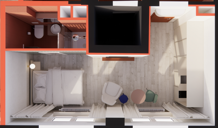BeONE is a project by 2ONE2 that introduces a modern approach to rental living. Designed for students and young professionals, it combines quality housing and privacy at an affordable price. Private apartments are complemented by shared spaces, including a fully equipped kitchen and laundry facilities, creating opportunities for connection and community.