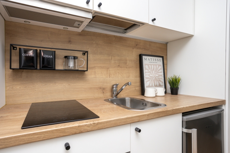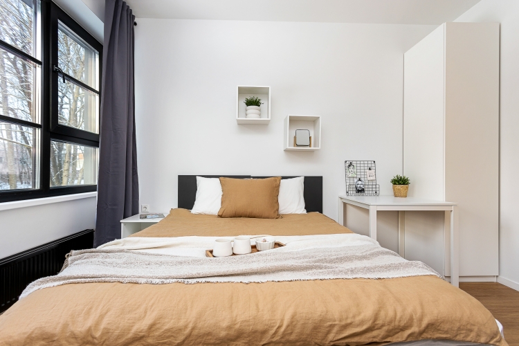 The apartment of the Newton Studios house, offering all the comforts and with a large window, creates a light-filled and cozy homely feeling. The affordable studio is equipped with a 140 cm wide bed, which allows accommodation for 1-2 people.